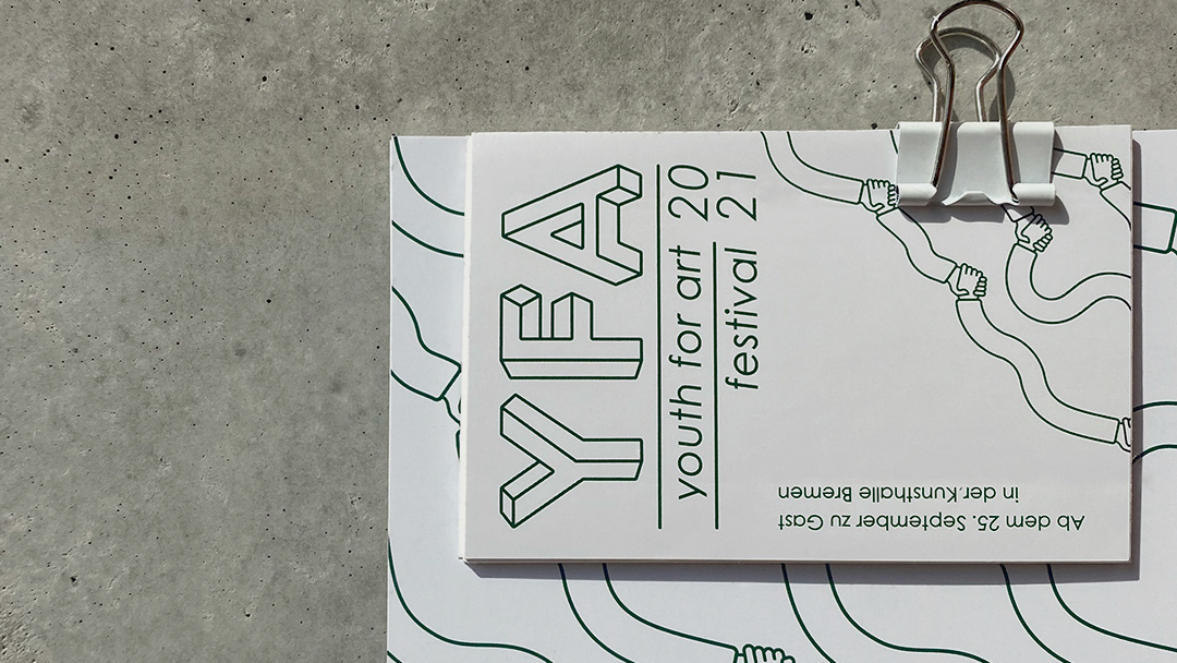Das "Youth For Art" Festival bietet jungen KünstlerInnen aus Bremen und der näheren Umgebung eine Plattform um auszustellen, sich auszutauschen und zu Netzwerken. Organisiert wird es vom Verein "Youth For Art e.V", einem Kollektiv junger Kreativschaffender und findet in Zusammenarbeit mit der Kunsthalle Bremen statt. Das jährlich wechselnde visuelle Konzept wird immer mit Bezug auf das jeweilige Sujet bzw. der Partnerausstellung der Kunsthalle entwickelt.